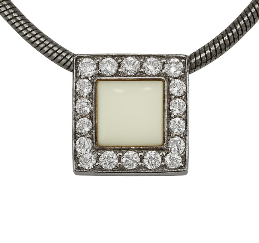 Colgante de plata 925 milésimas con zircón blanco y negro y esmalte baño rodio
