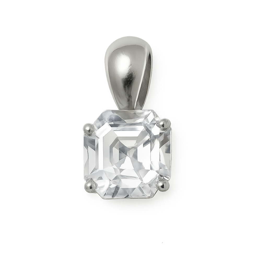 Colgante de plata 925 con zircon y baño de rodio en oro blanco 18 ktes