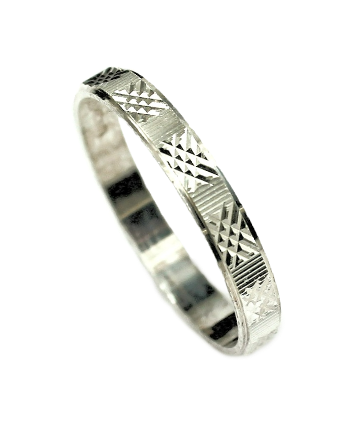 Alianza de plata 925 pulida y diamantada con baño de oro blanco 18 ktes