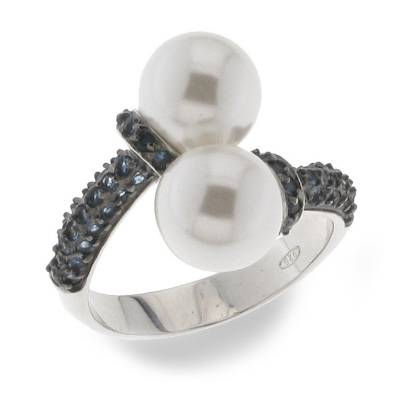 Anillo de plata 925 con perla y zircon y baño de rodio en oro blanco 18 ktes