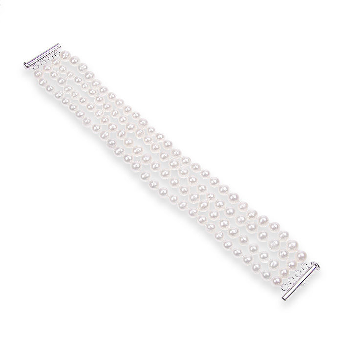 Pulsera de perla natural de 5 mm con cierre de plata 925 bañado en rodio